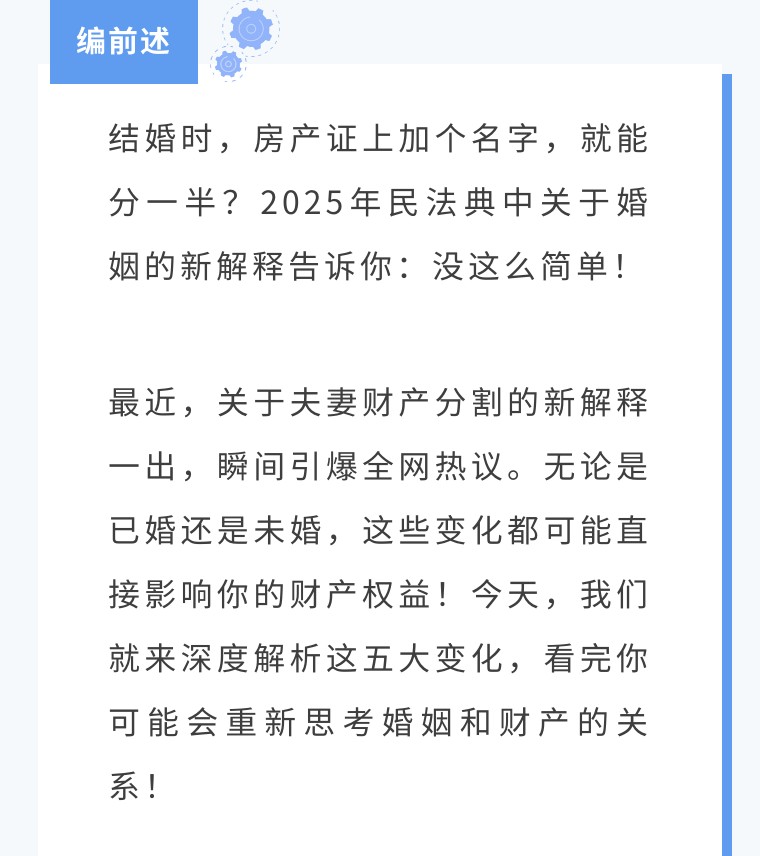 <<返回上一頁 婚內加名還能分房產嗎?新婚姻法這5點變化你必須知道! 發布時間:2025-02-28來源:點擊:521 【版權聲明】文中內容、圖片整合網上資源而來,如若侵權,請聯系刪除 用手機看 拍下二維碼,信息隨身看 試試用微信掃一掃,在你手機上繼續觀看此頁面。 上一篇:重磅!洛陽市城中村改造以購代建實施方案解讀版來了 下一篇:10年廚師干房產中介丨春節 10 天狂攬 20 萬,他是怎么做到的?